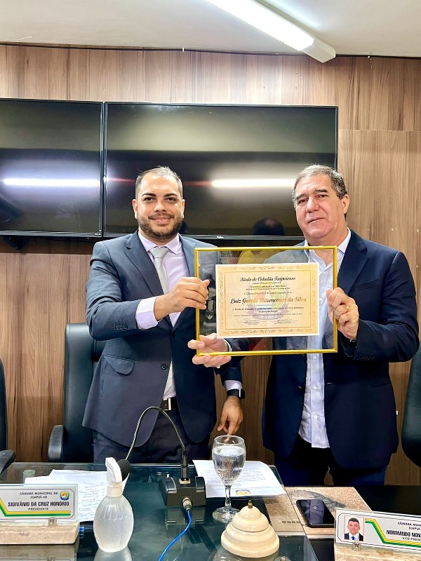 A Câmara Municipal de Icapuí realizou, nessa quarta-feira (20), Sessão Solene para a entrega do Título de Cidadão Icapuiense a Luiz Gastão Bittencourt da Silva, Presidente Licenciado do Sistema Fecomércio - CE.