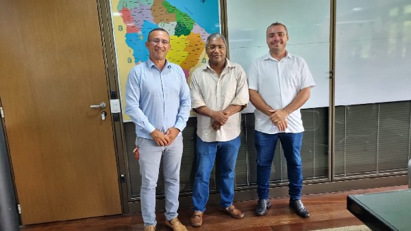 O presidente da Câmara Municipal de Icapuí, Hélio Fernandes, esteve na manhã de hoje, 07 de fevereiro, visitando o gabinete do Secretário de Articulação Política em Fortaleza, onde entregou pessoalmente os projetos de execução da encanação de água para as comunidades da Ilha do Meio, Gravier de Cima, Ariza e Quitérias/Pompeus/Placa. A entrega foi realizada ao Secretário Waldemir Catanho, com a presença de Marcelo Varandas, do SAAE.
